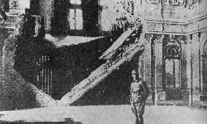Аустро-угарски официр пред порушеним Двором краља Петра I