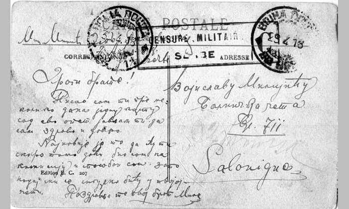 Дописница из Бизерте Милорада Милијића Војиславу Милијићу у Солун, 7. април 1918.