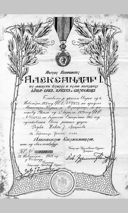 Повеља Албанске споменице Живка Николића, 23. новембар 1921.