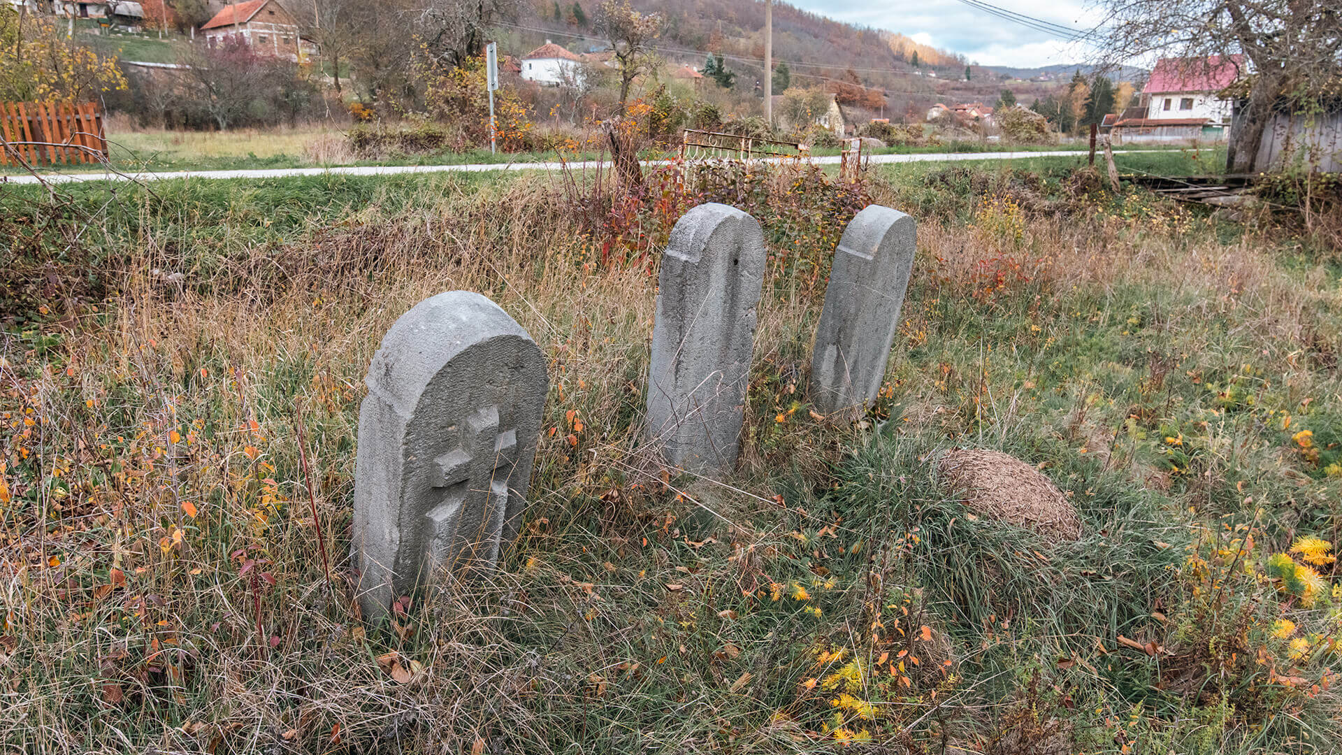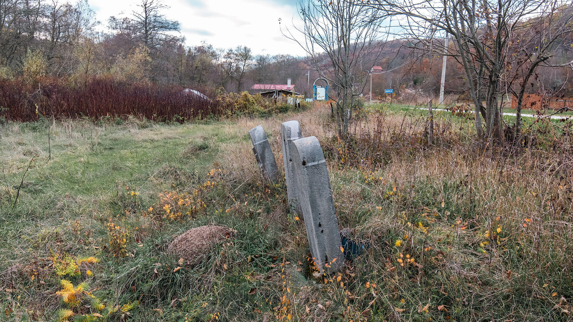 Испод пута који кроз Биоску води ка Кремнима, налазе се један до другог три крајпуташа војницима Драгутину, Сави и Светиславу Лазићима.